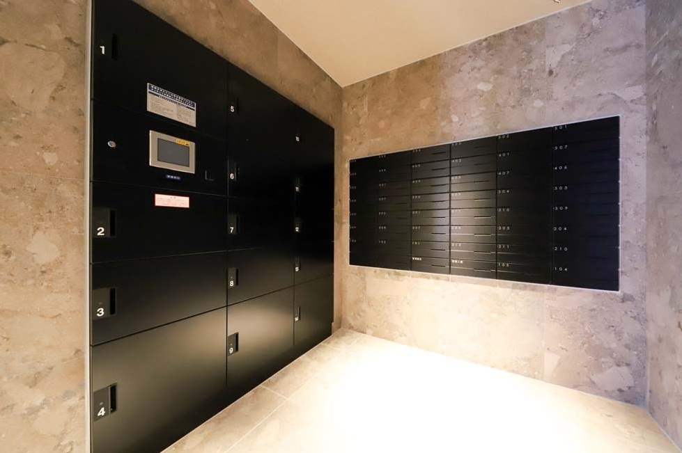 オートロック、エレベーター、メールボックス、宅配ボックス、インターネット(NTTフレッツ光、NURO光/別途契約)、エアコン、バストイレ別、洗面台、ウォシュレット、浴室換気乾燥、室内洗濯機置き場、ガスコンロ(2口)、ガス給湯器、地デジアンテナ、BS・110℃Sアンテナ設置、TVモニター付きインターホン、防犯カメラ、火災報知器、クローゼット、バルコニー、外観タイル張り
